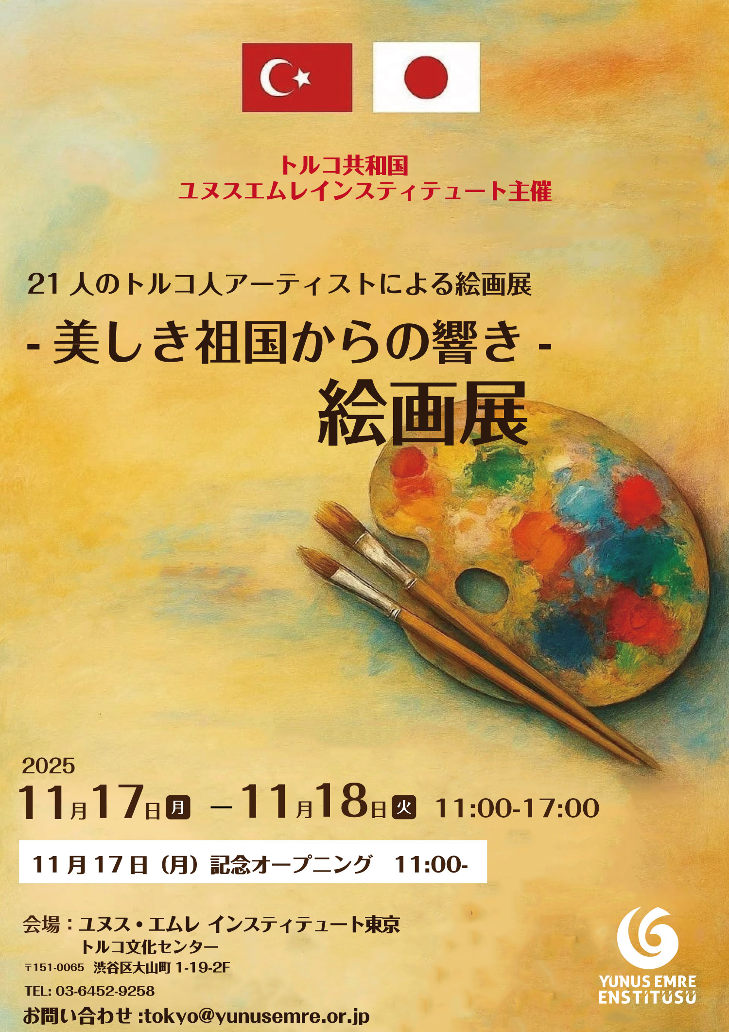 ユヌスエムレインスティテュート東京トルコ文化センターにて、『21人のトルコ人アーティストによる絵画展「美しき祖国からの響き」』が開催されます。